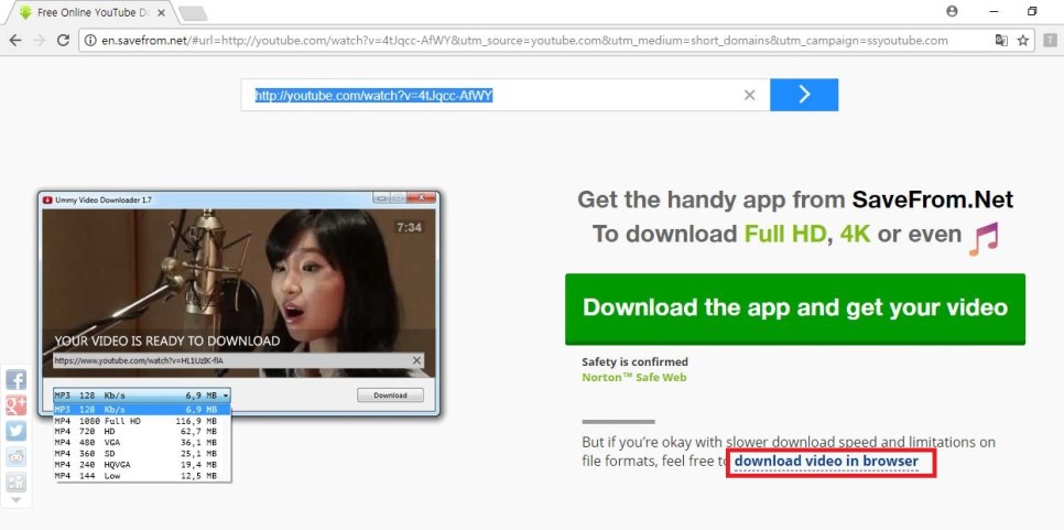 오른편에 빨간 박스로 표시해 놓으신 부분에 보시면 download video in browser 를 선택합니다.