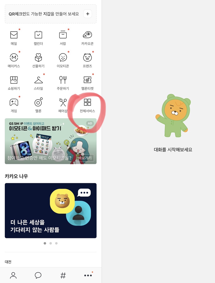 하단 맨 오른쪽 점 세개 찍힌 걸 누르면
