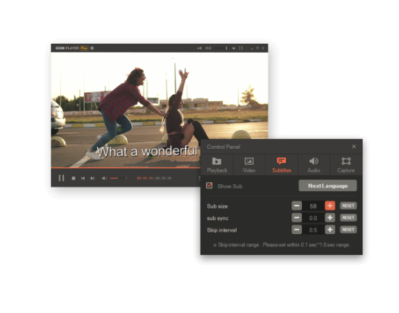 AVI, MP4, MKV, FLV, WMV, MOV 등 다양한 포맷의 파일 재생을 지원하며,