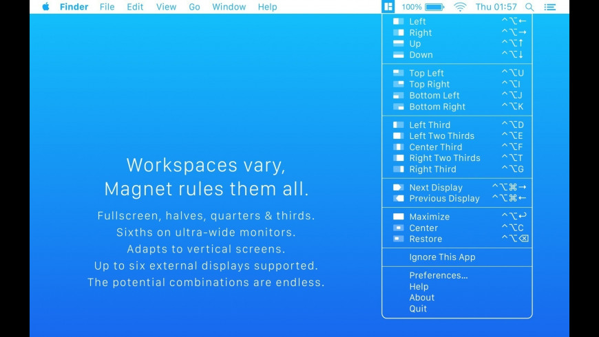 하나의 앱에서 다른 앱으로 컨텐츠를 이동하거나, 데이터를 나란히 비교하거나, 기타의 방법으로 복수 과제를 수행할 때, 윈도우를 이에 따라 정렬해야합니다. 마그넷은 이 절차를 깨끗하게, 그리고 단순하게 만듭니다.