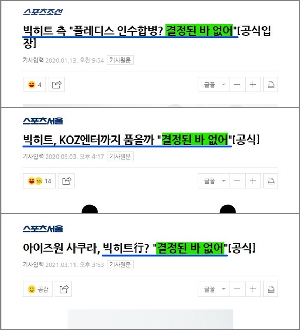 그러나 빅히트 엔터는 "결정된 바 없다"라고 입장을 밝혔지만 전부터 나온 답변을 보면 더 기다려 봐야 알 수 있을 듯싶다.