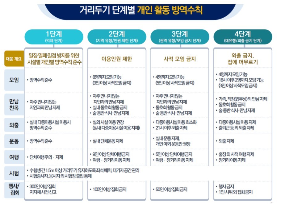 사회적 거리두기 4단계로 단계가 명확해지며,
