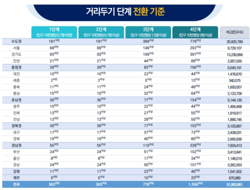 사회적 거리두기 4단계로 단계가 명확해지며,