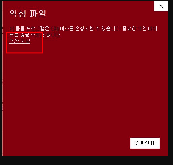 추가 : 아래와 같은 화면이 나올경우 [추가 정보]를 누르면 실행 가능합니다.