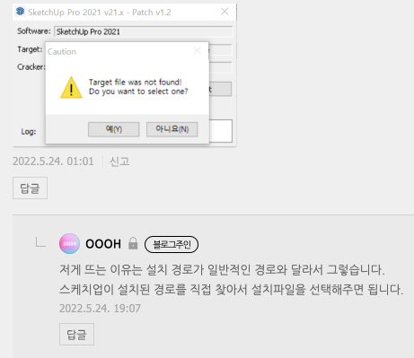 스케치업 패치 오류 해결 스케치업 - 지정한 장치, 경로 또는 파일에 액세스 할 수 없습니다. 이항목에 액세스할 수 있는 권한이 없는 것 같습니다 파일이 깨지면 그런 메시지가 나