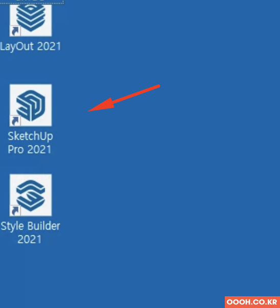 바탕화면에 설치된 스케치업 프로 2021을 실행합니다