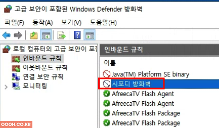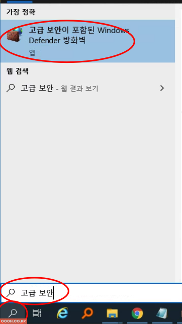 윈도우 시작을 누르고 "고급 보안" 이라고 치면 나오는 메뉴를 누릅니다.
