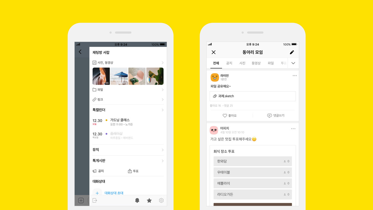 공지, 투표 기능으로 모임 관리는 편리하게, 우리들의 소중한 순간은 게시판에 올려 간직해 보세요.