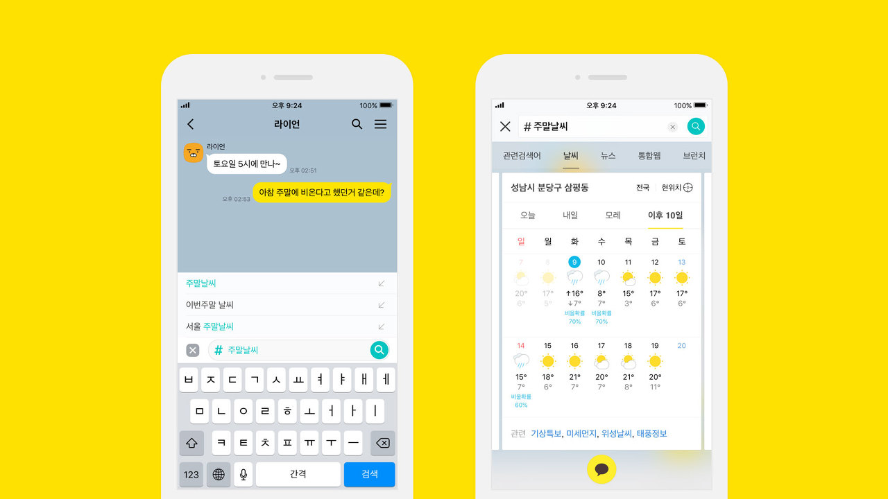 톡하다가 궁금하면 샵(#)검색! 오늘 뭐 먹지? 내일은 비가 올까? 대화 중에 바로 검색하고 공유