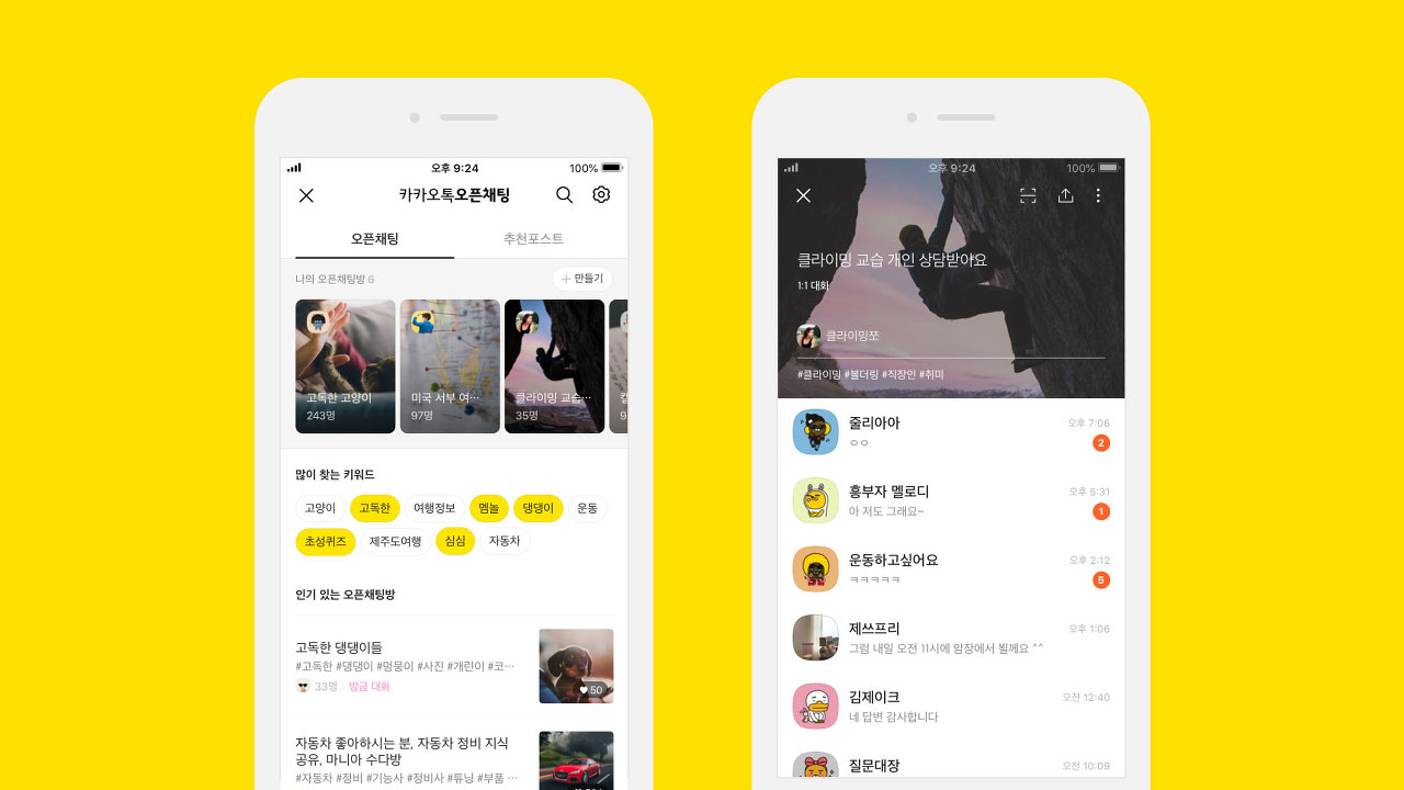 관심사로 모여 간편하게 대화하는 카카오톡 오픈채팅.