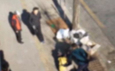 분주히 폐지를 정리하는 할머니 곁으로 갑자기 건장한 남자가 다가서더니 손가락질을 하며 시비를 겁니다.