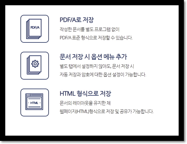 PDF/A 표준 형식으로 저장할 수 있습니다.