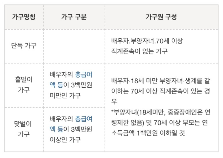 가구원 구성도 위의 표에 있는 조건에
