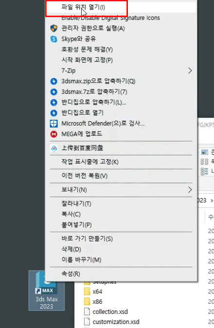 바탕화면에 맥스 > 마우스오른쪽키> 파일 위치 열기