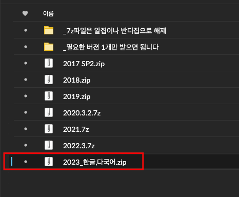 2023과 2023.1은 설치방법이 다릅니다.