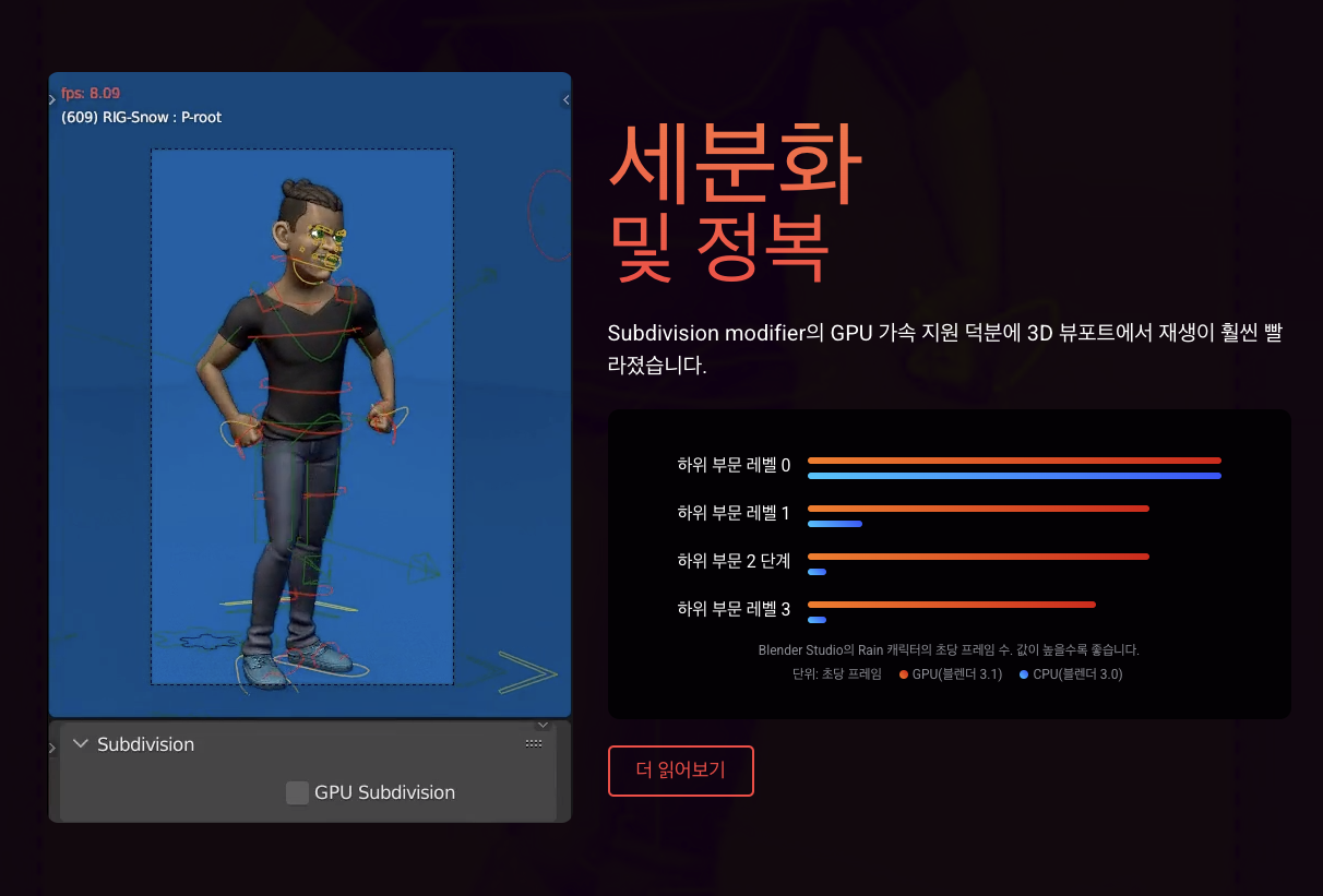Blender Foundation과 온라인 개발자 커뮤니티는 이미 뛰어난 릴리스에 대한 확실한 업데이트인 Blender 3.1을 선보이게 된 것을 자랑스럽게 생각합니다.
