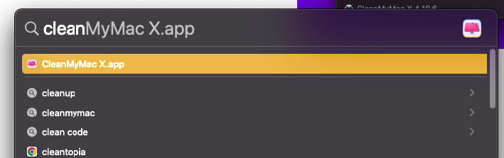 스팟라이트에서 "clean" 검색