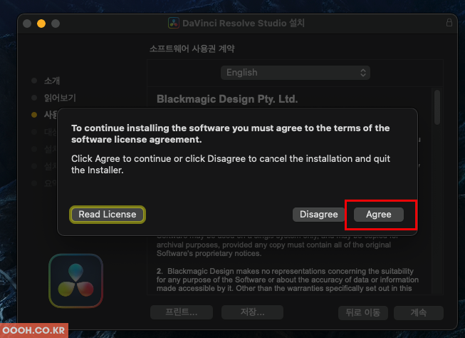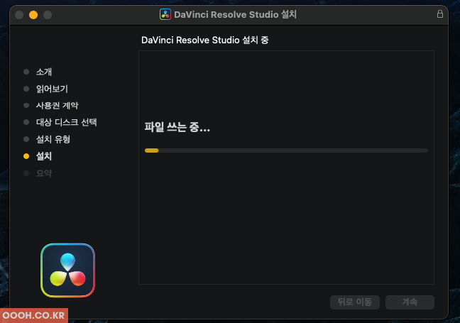 DaVinci Resolve Studio의 표준 설치 절차를 따릅니다.