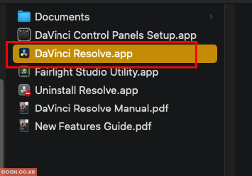 응용 프로그램 폴더에서 DaVinci Resolve 폴더를 찾아 엽니다.