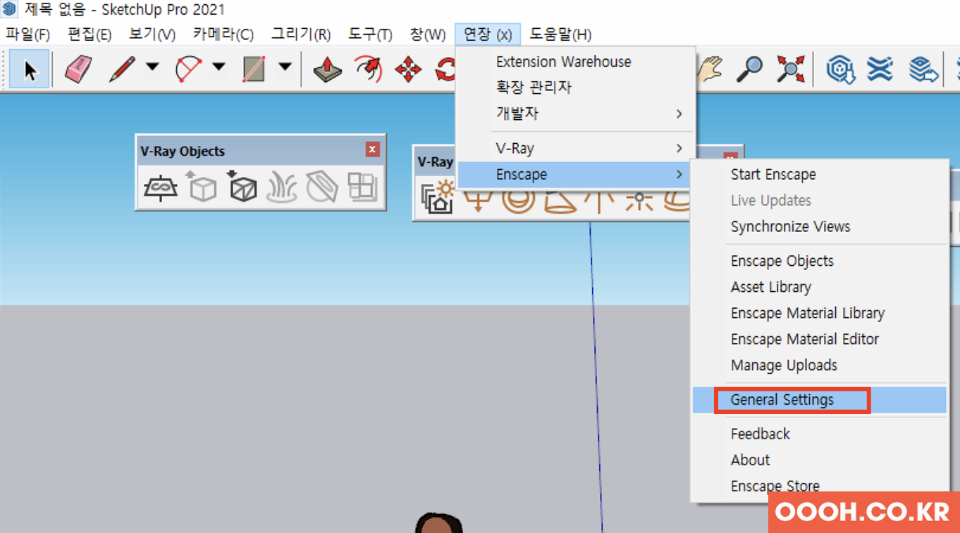 스케치업 > 연장 > Enscape > General Settings 메뉴로 진입합니다.