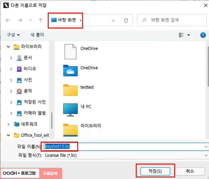 그럼 라이센스 파일이 생성되어 어디에 저장할지 물어봅니다.