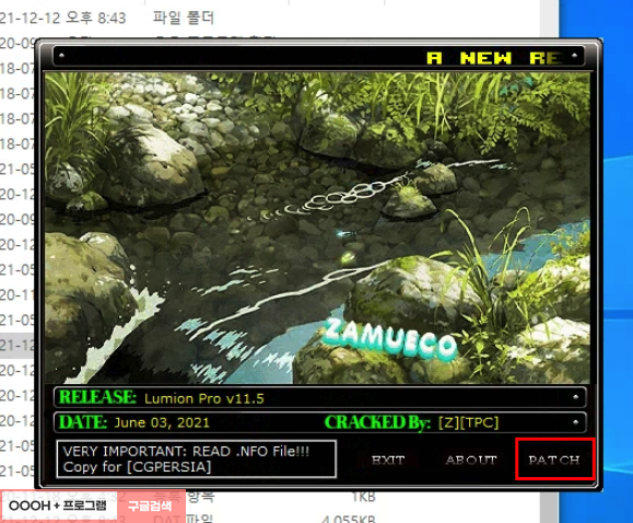 Crack폴더안에 lumion.pro.v11.5-zmo 크랙 파일을 복사합니다.