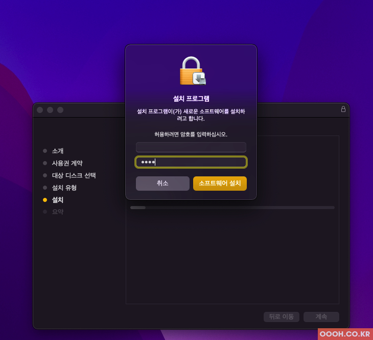 설치과정에서 패스워드를 요구하면 입력하고 설치를 시작합니다