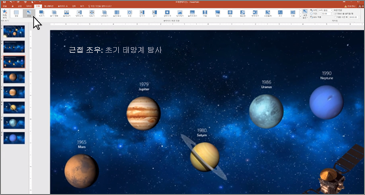 모핑으로 전체 슬라이드에서 원활한 애니메이션, 전환, 개체 이동을 만들어 보세요.