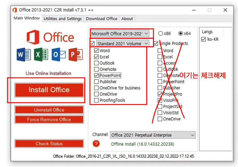 기존 설치한 파일이 남아있거나 설치가 꼬였을 경우 오피스를 깨끗히 삭제하고 진행합니다.
