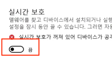 (나중에 다 설치 후 다시 실시간 보호를 다시 활성화 한다.)