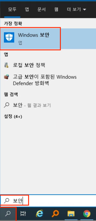 1. 윈도우 검색에서 "Windows 보안"을 치면 메뉴가 접근이 가능한다.