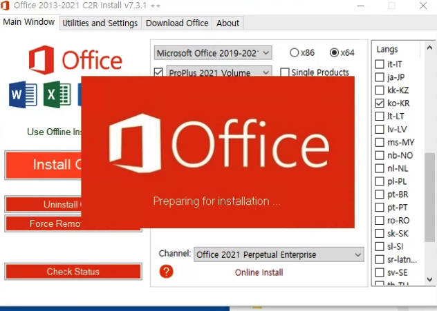 MS 오피스 2021부터 2019, 2016까지 다양한 버젼을 손쉽게 설치하고 크랙까지 가능한 툴 입니다.