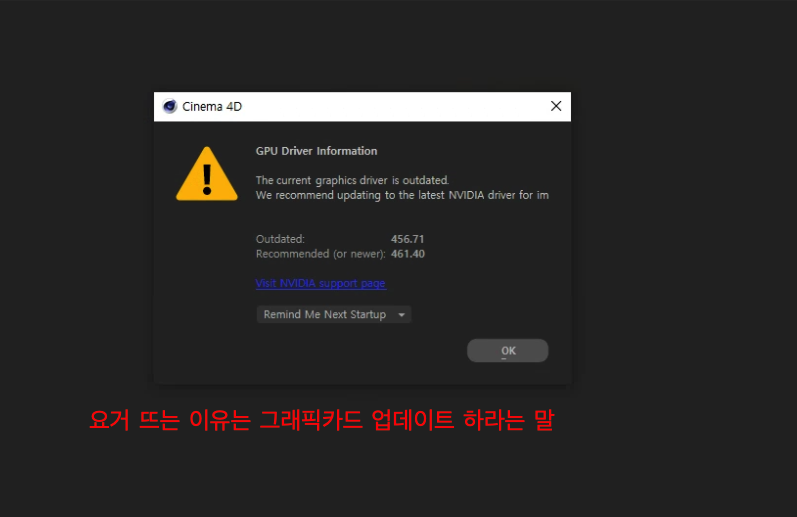 아래와 같은 화면 뜨면 그래픽카드 업데이트 하기