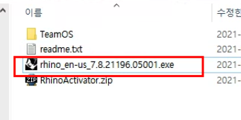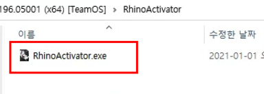 ▼아까 설치 폴더에서 RhinoActivator.zip 압푹파일을 푼다.