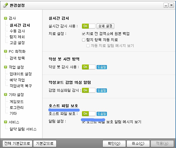 추가 : 알약사용자는 환경설정에서 호스트 파일 보호를 꺼야 hosts 수정이 가능합니다.