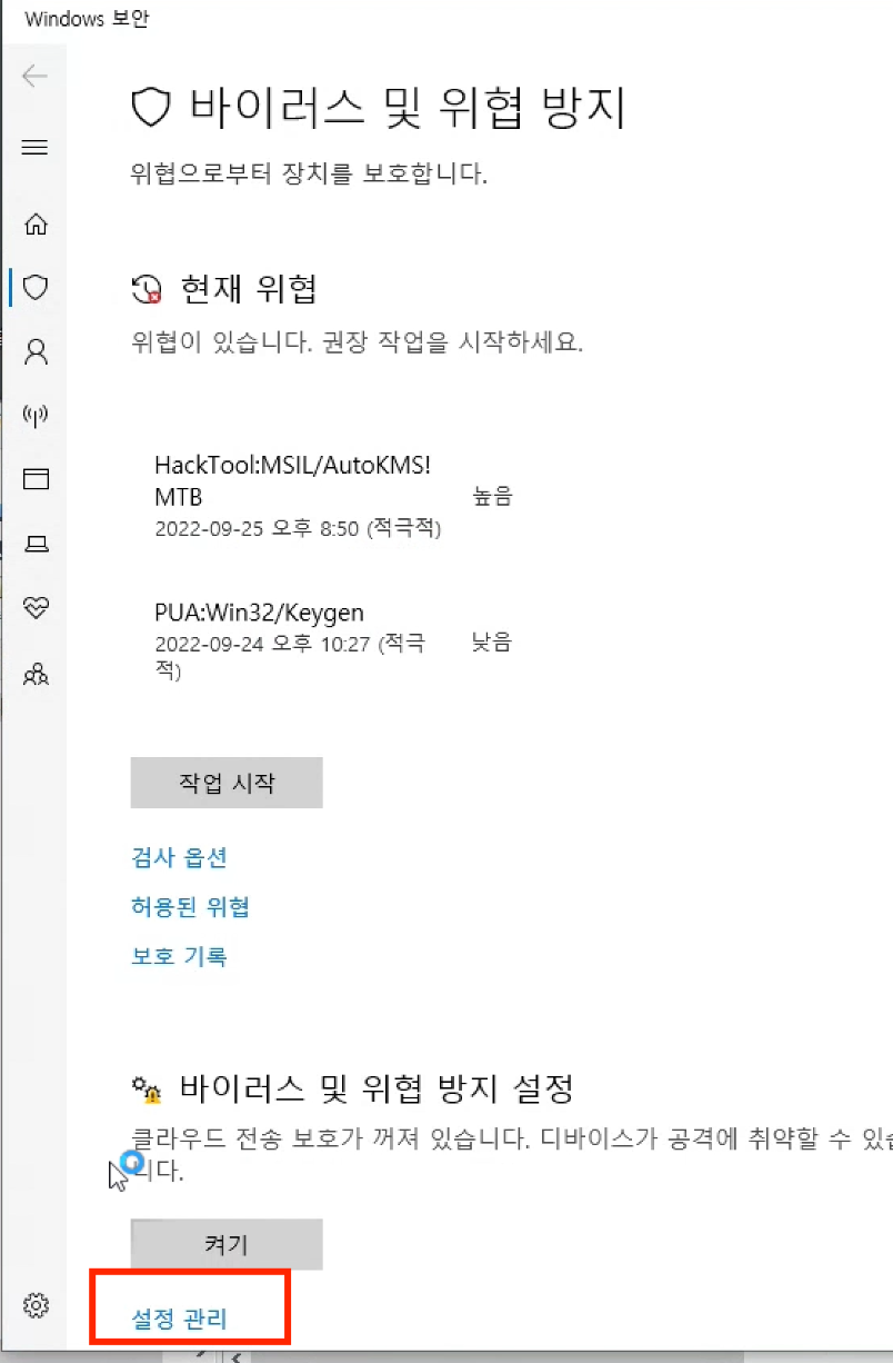 ▼ 실시간 보호 끔