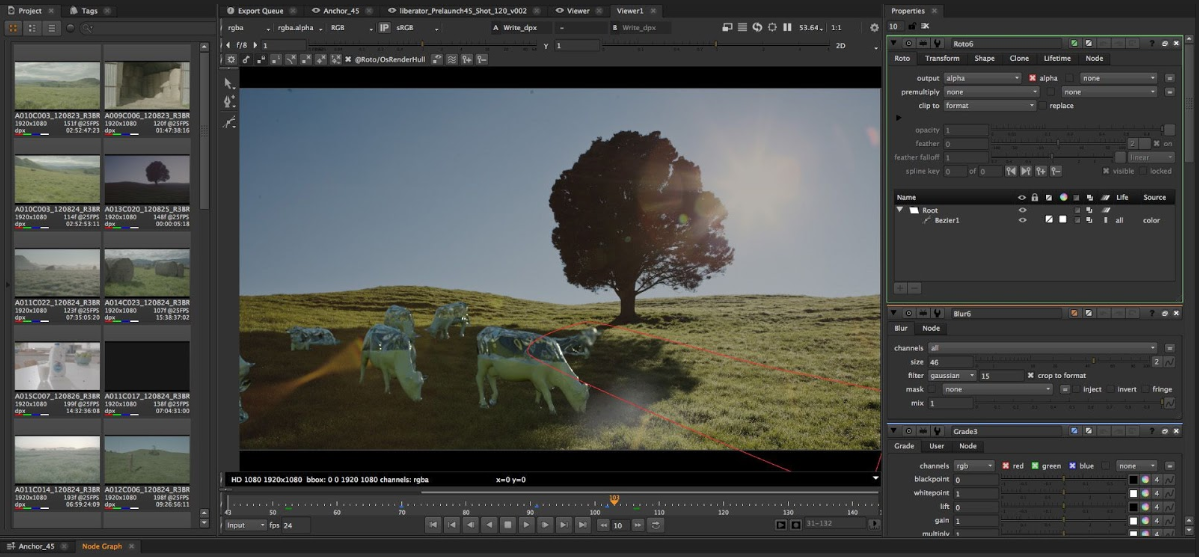 Nuke는 200개 이상의 크리에이티브 노드를 통해 디지털 합성의 다양한 문제를 해결하는 데 필요한 모든 것을 제공합니다. 여기에는 업계 표준 키어, 로토스코프, 벡터 페인트 도구, 색상 보정 등이 포함됩니다.