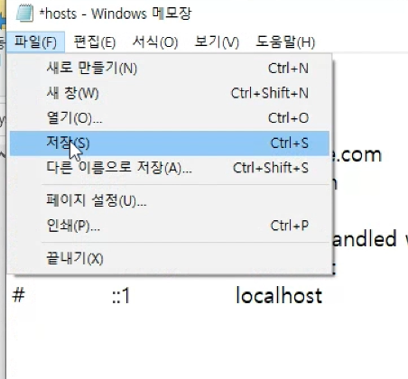 만약 알약이 깔려있으면 hosts수정 가능하게 보호를 끄고 진행해야합니다.