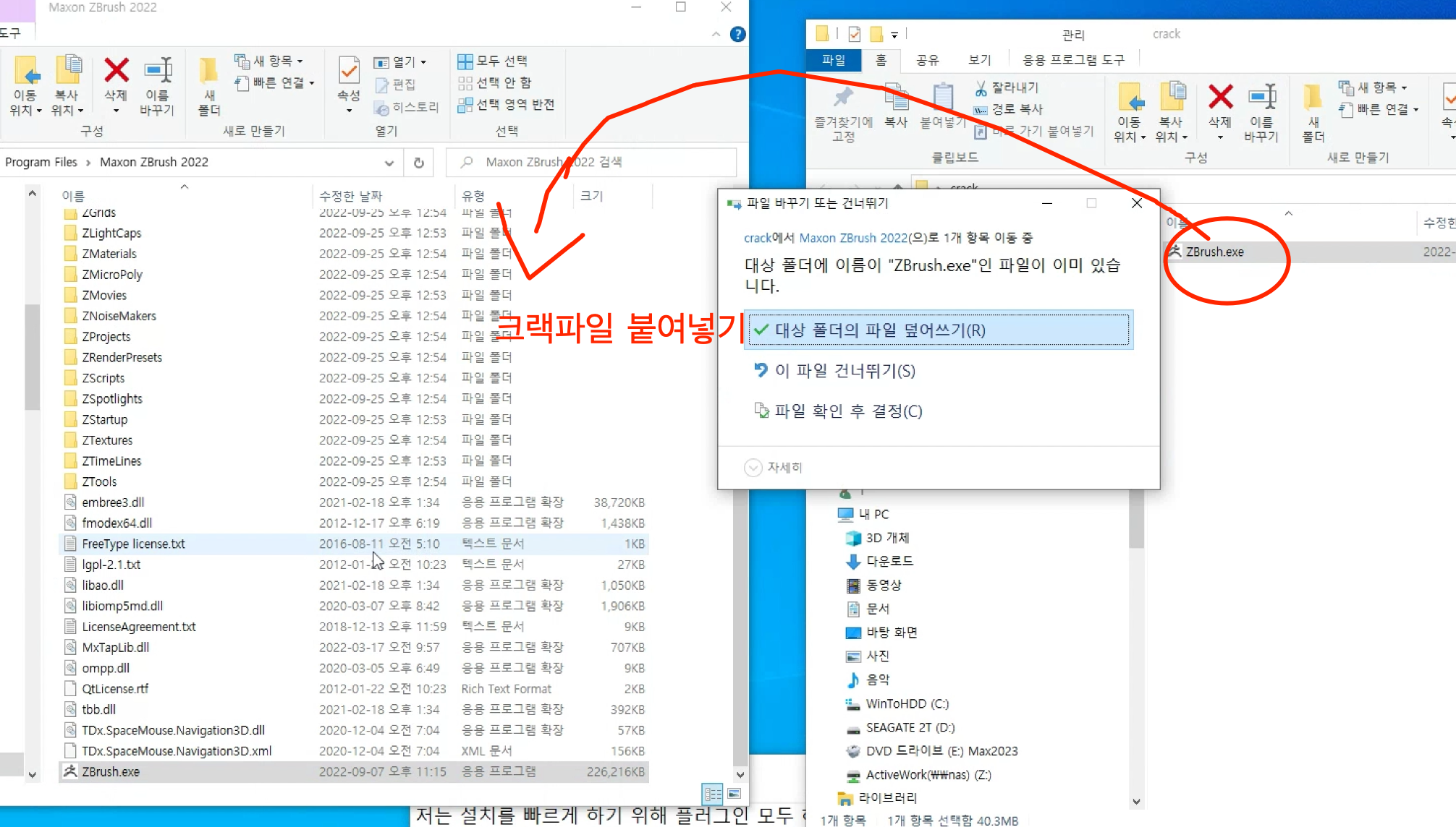 설치된 경로에 크랙 덮어쓰기