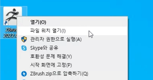 바탕화면에 설치된 지브러시 아이콘 > 마우스 오른쪽키 > 파일 위치 열기