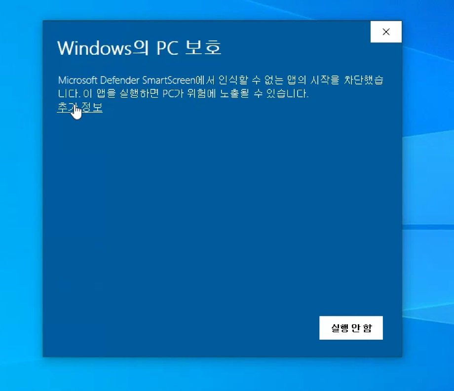 아래화면뜨면 추가정보 > 실행