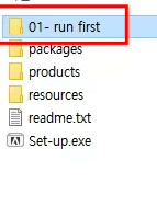 2. 동봉 파일에 01 번 폴더 진입하여 설치 전 패치먼저 해야합니다.