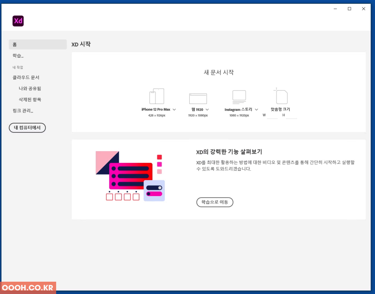 어도비 XD를 실행합니다.