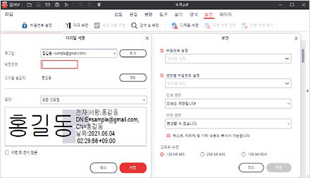 문서 열람 시 암호 설정, 편집 권한 암호 설정, 디지털 서명 기능 등으로 문서를
