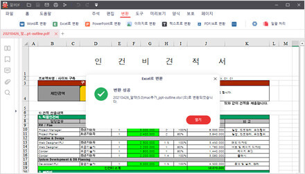 PDF 문서를 MS오피스(doc,docx,pptx,xls,xlsx), 한글(hwp.hwpx),이미지(png,jpg,gif) 등 원하는 형식으로 변환 및 편집하여 저장할 수 있습니다.