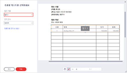 특정 영역만 선택하여 문자인식을 적용할 수 있습니다.
