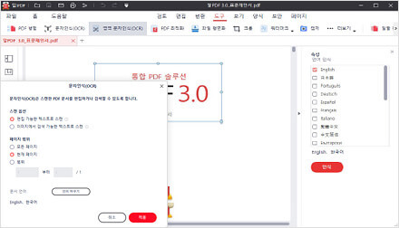 - [영역 문자인식(OCR)] 기능이 추가되었습니다. 문서의 일부만 선택하여 OCR 인식 기능을 사용할 수 있습니다.