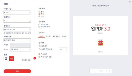 - [인쇄] 기능의 옵션이 다양해졌습니다.