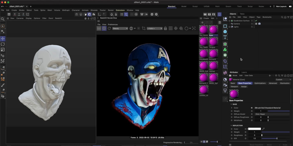 디지털 조각 소프트웨어 ZBrush에 대한 업데이트된 GoZ 브리지는 이제 가장자리 주름 설정 및 정점 가중치를 전송하고 이제 ZBrush 텍스처 또는 Polypaint 데이터를 기반으로 Redshift 재료를 생성할 수 있습니다.