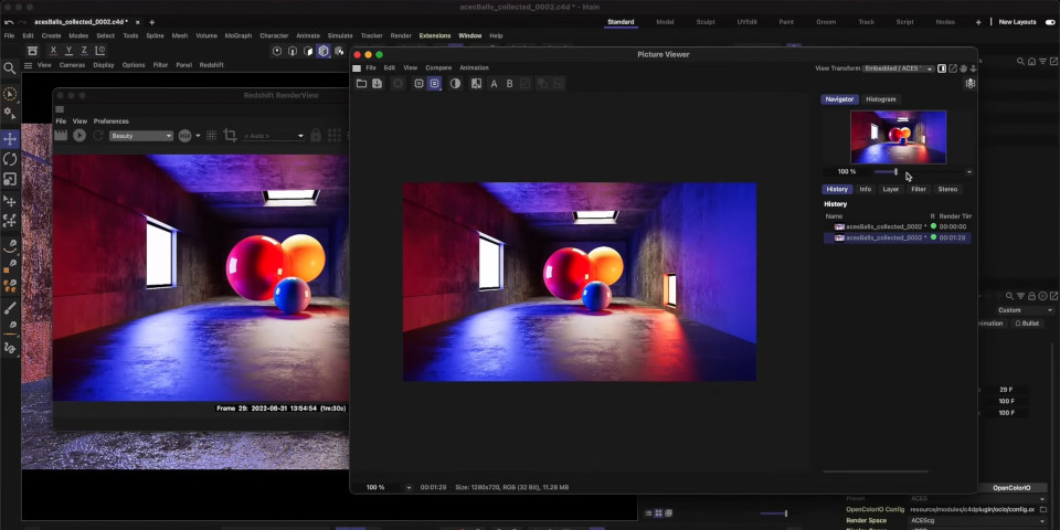 inema 4D는 이제 3D 보기, Picture Viewer 및 Redshift RenderView에 적용된 OCIO 색상 관리와 색상을 선택하거나 텍스처 및 재료로 작업할 때 OpenColorIO를 기본적으로 지원합니다.